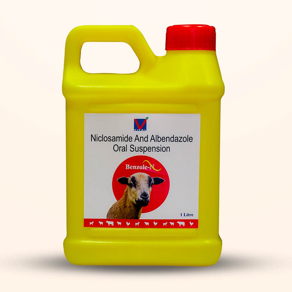 Benzole-N is used in the treatment & control of immature & mature amphistomes, Liver Flukes, Tape Worms, Round worms and lung worms in livestock & poultry